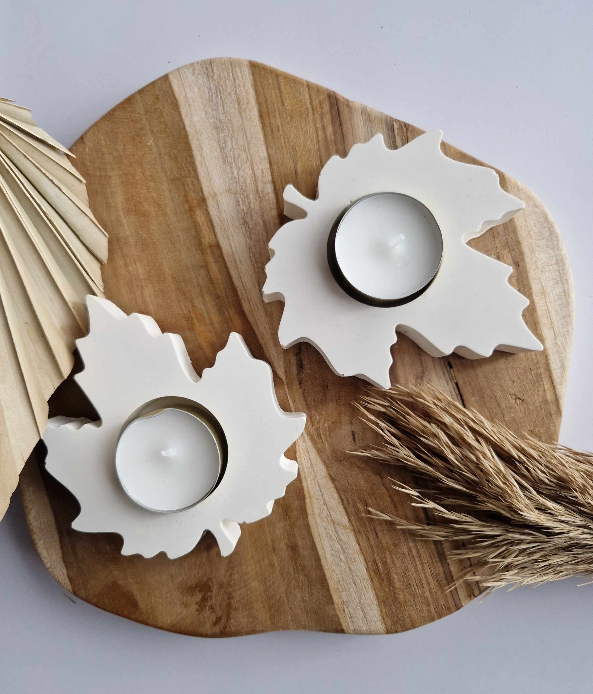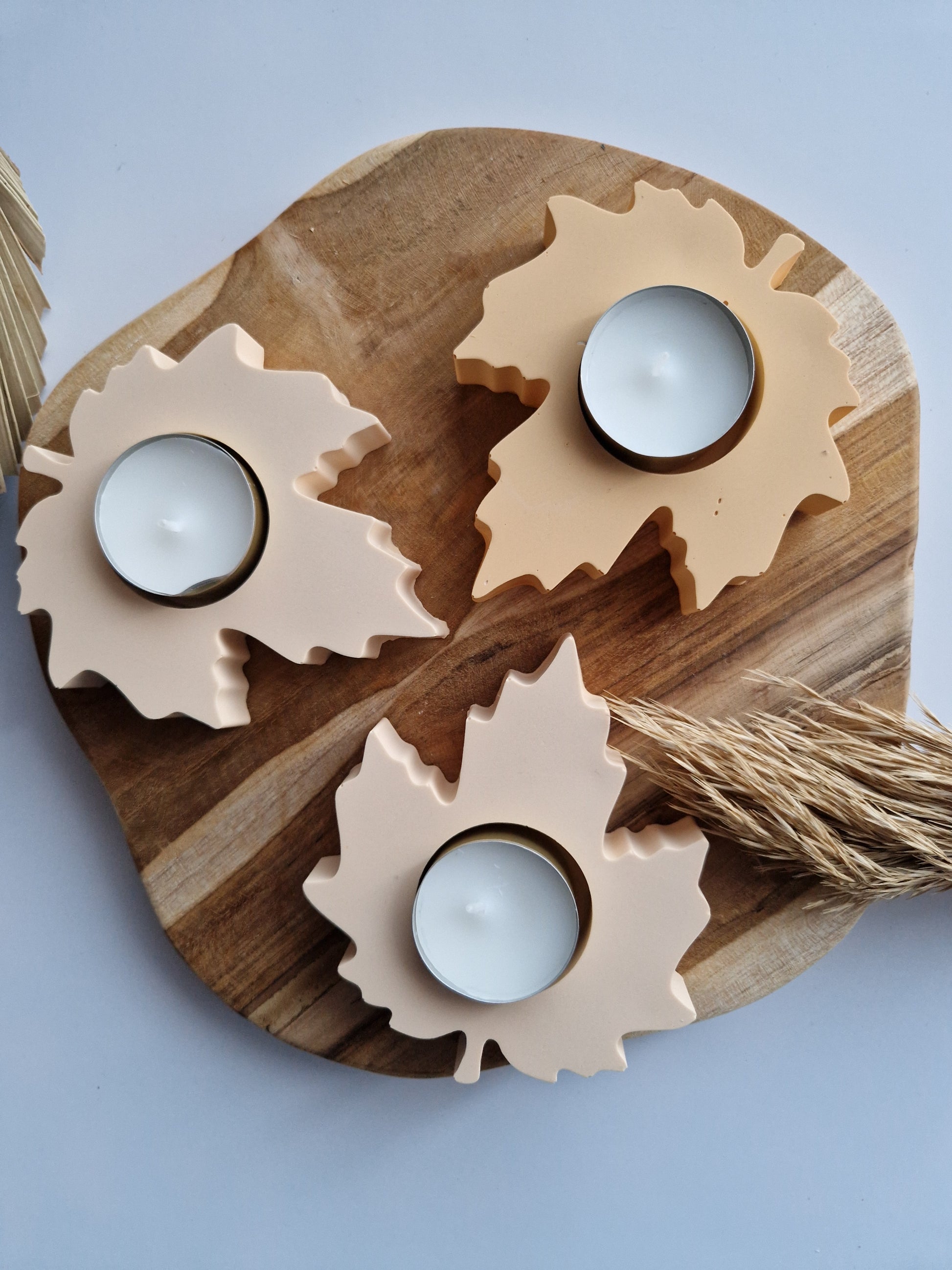Breng de warme, knusse sfeer van de herfst in huis met deze handgemaakte kaarsenhouder in de vorm van een herfstblad. Gemaakt uit jesmonite, een duurzaam en stevig materiaal met een luxe uitstraling. Elke houder is uniek door de handgemaakte afwerking en past perfect in zowel een modern als een landelijk interieur.