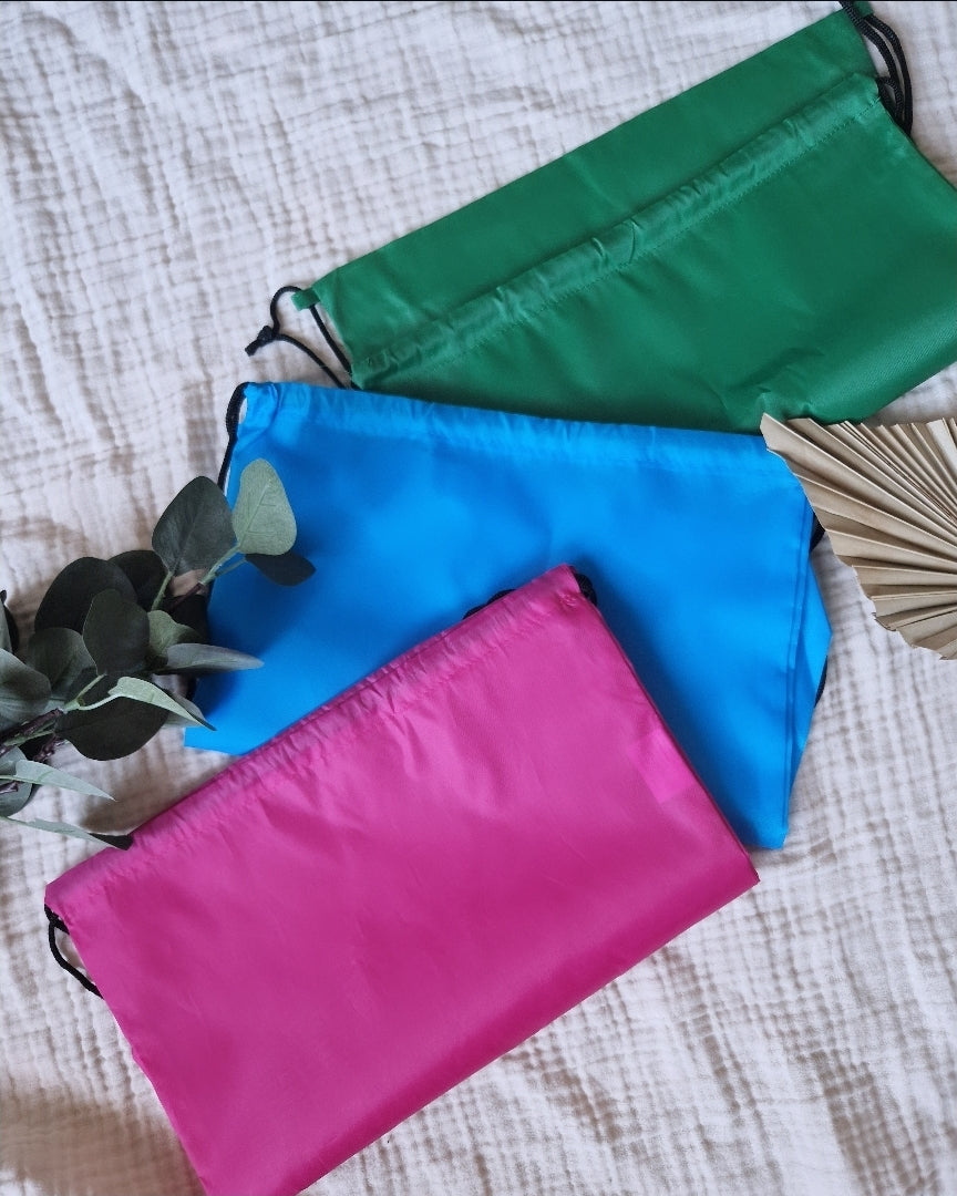 Deze lichte en stevige zakken zijn perfect voor zwemles, turnles of sportdagen. Dankzij de handige trekkoordsluiting zijn ze makkelijk te openen en sluiten door kinderen. Verkrijgbaar in drie frisse kleuren: groen, blauw en roze.